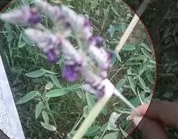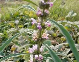 叶卵圆形,卵圆状长圆形至阔披针形,长1.5-4厘米,宽1.1-2.2厘米,先端钝至急尖,基部阔楔形,边缘为具圆齿状锯齿,草质,上面橄榄绿色,密被贴生的纤毛,下面较淡,被污黄色绒毛;叶柄长5-15毫米。轮伞花序2-4花;苞片极小,线形,长约6毫米,早落。