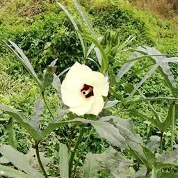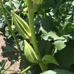 开花结果期:从始花到采收结束,约需85-120天。出苗后需50-55天,第一朵花即开放。第一二朵花从开花到收获所需天数稍长。以后随温度升高,收获时间缩短。通常播种后70天左右即可第一次采收。在昼温28-32℃,夜温18-20℃适温下开花后4天即可收获。黄秋葵开花结果后生长速度加快,长势增强,尤以高温下生长更快,7月每3天即展开一片真叶,9月则需4-5天展开一片真叶。
