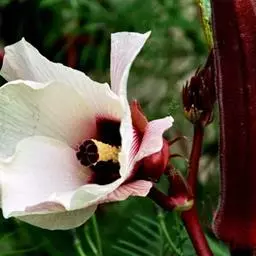 咖啡黄葵的营养丰富,幼果中含有大量的粘滑汁液,具有特殊的香味。其汁液中混有果胶,牛乳聚糖及阿拉聚糖等。它的果胶为可溶性纤维,在现代保健新观念中极为重视。凡经常食用它有健胃肠,滋补阴阳之功效。据测定每百克嫩果中含蛋白质2.5克、脂肪0.1克、糖类2.7克,纤维素A660国际单位。维生素B1,0.2毫克、维生素B20.06毫克、维生素44毫克、钙81毫克、磷63毫克、铁0.8毫克,是一种新世纪理想的高档绿色营养保健蔬菜。