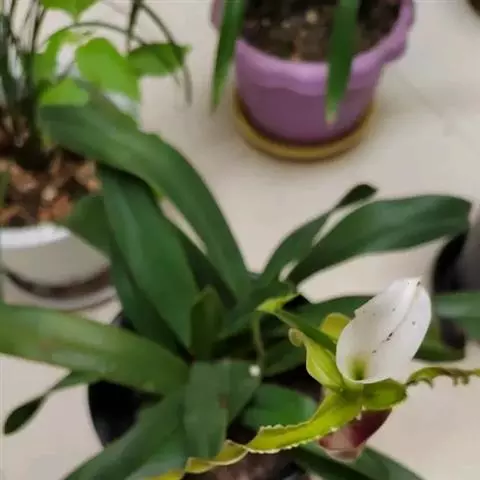 小叶兜兰兰科,兜兰属地生或半附生植物。叶基生;数枚至多枚,叶片带形、革质。花葶从叶丛中长出,花苞片…