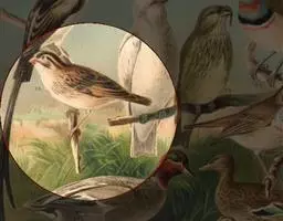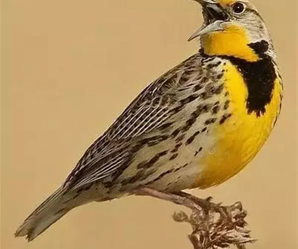 西美草地鹨 西美草地鹨体长19-26cm,翼展35-40cm,体重90-150g。黑帽,白眉,眼睛前端有一块黄色大斑,黑眼睛。体羽以黑色为主,带有醒目的黄色斑;上体和翅膀具黑褐色条纹,颈部和下颌黄色,胸部鲜黄色,在颈部和胸部之间有一道很宽的V形黑纹。侧面的条纹较暗。尾羽外侧白色。鸟喙嘴蓝灰色。雌鸟常为褐色。