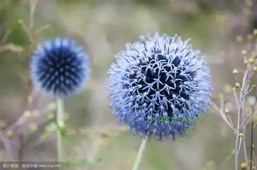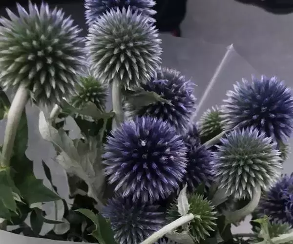 作为观赏植物,蓝刺头又名蓝星球,颜色为蓝灰色,形态有“单头型”和“多头型”两种,还可制成自然的干燥花(须先将一部分叶片去除,倒吊在通风处,一星期即可完成干燥)。