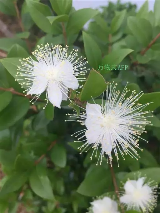 香桃木(学名:Myrtus communis Linn.)桃金娘科常绿灌木,或有时为高达5米的小乔木;枝四棱,幼嫩部分稍被腺毛;叶芳香,革质,叶片卵形至披针形,顶端渐尖,基部楔形。花芳香,中等大,被腺毛,花梗细长,花瓣5片,白色或淡红色,较大,倒卵形。浆果圆形或椭圆形,大如豌豆,蓝黑色或白色,顶部有宿萼。