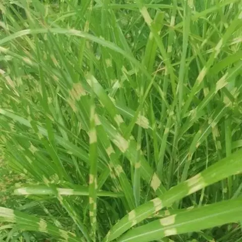 斑叶芒是禾本科、芒属多年生草本植物。丛生状,茎高可达1.7米。叶片有黄色不规则斑纹,…