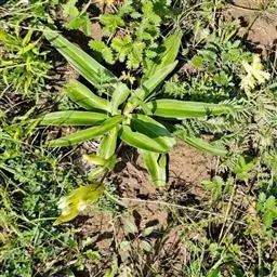 多年生草本,高10-25厘米,全株光滑无毛,基部被枯存的纤维状叶鞘包裹。须根多条,向左扭结成一个圆锥形的根。枝多数丛生,斜升,黄绿色或紫红色,近圆形,光滑。莲座丛叶披针形或线状椭圆形。长5-15厘米,宽0.8-1.4厘米,先端渐尖,基部渐狭,边缘粗糙,叶脉3-5条,在两面均明显,并在下面突起,叶柄宽,扁平,膜质,长2-4厘米,包被于枯存的纤维状叶鞘中。茎生叶少数,线状披针形至线形,长2-5厘米,宽0.2-0.4厘米,先端渐尖,基部渐狭,边缘粗糙,叶脉1-3条,在两面均明显,中脉在下面突起,叶柄宽,长0.5-10厘米,愈向茎上部叶愈小,柄愈短。