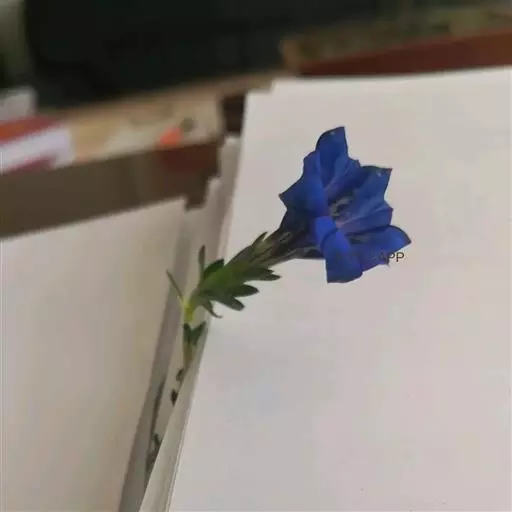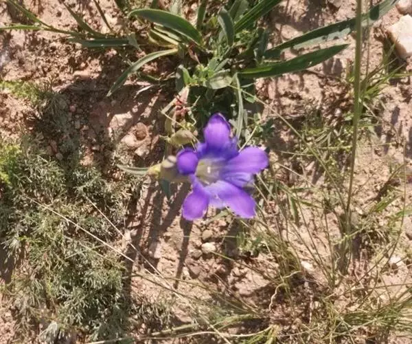 聚伞花序顶生及腋生,排列成疏松的花序;花梗斜伸,黄绿色或紫红色,极不等长,总花梗长至5.5厘米,小花梗长至3厘米;花萼筒膜质,黄绿色或带紫红色,筒形,长7-10毫米,不裂,稀一侧浅裂,裂片5个,不整齐,线形,绿色,长3-8毫米,先端渐尖,边缘粗糙,背面脉不明显,弯缺宽,圆形或截形;花冠深蓝色,有时喉部具多数黄色斑点,筒形或漏斗形,长3.5-4.5厘米,裂片卵形或卵状椭圆形,长5-7毫米,先端钝,全缘,褶整齐,三角形或卵形,长1.5-2-毫米,先端钝,全缘或边缘啮蚀形;雄蕊着生于冠筒中下部,整齐,花丝线状钻形,长1-1.2厘米,花药矩圆形,长2-3毫米;子房无柄,披针形或线形,长18-23毫米,先端渐尖,花柱线形,连柱头长2-4毫米,柱头2裂。蒴果内藏,无柄,狭椭圆形,长2.5-3厘米;种子淡褐色,有光泽,矩圆形,长1.3-1.5毫米,表面有细网纹。花果期7-9月。