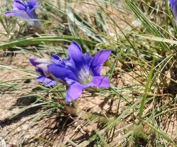 达乌里秦艽(Gentiana dahurica Fisch.)是龙胆科龙胆属植物。多年生草本,高10-25厘米,全株光滑无毛,基部被枯存的纤维状叶鞘包裹。须根多条。枝多数丛生,斜升,黄绿色或紫红色,近圆形,光滑。莲座丛叶披针形或线状椭圆形。聚伞花序顶生及腋生,排列成疏松的花序;花梗斜伸,黄绿色或紫红色。蒴果内藏,无柄,狭椭圆形,长2.5-3厘米;种子淡褐色,有光泽,矩圆形,长1.3-1.5毫米,表面有细网纹。花果期7-9月。