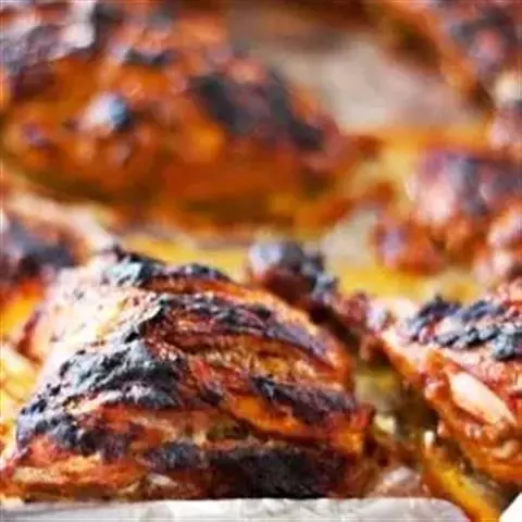坐勺上火,放入香油25 g,投入大料2粒、葱段、姜片25 g炒出香味,烹入料酒,加入白汤、酱油50 g,白糖25 g,放入鸡块烧开,撇去浮沫,加入杏仁,用微火煨煸至透(在煨煸中要翻动几次)。将勺移入旺火,拣出佐料,收汁至浓,加入味精,淋入香油,盛入盘中即成。