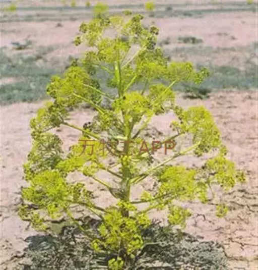 新疆阿魏所分泌的具有特殊葱蒜样臭味的油胶树脂,被历代本草及《中华人民共和国药典》收载,具有消积、散痞、杀虫的功效,可用于治疗胃病、消化不良、虫积腹痛等疾病;是中国维吾尔族、蒙古族、藏族等少数民族传统民族药和中药阿魏的唯一来源。