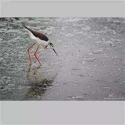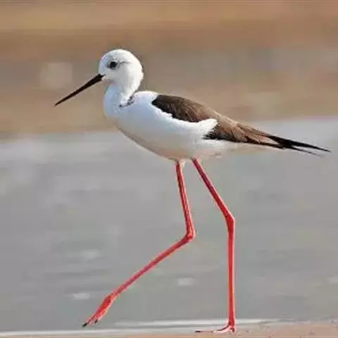 黑翅长脚鹬(学名:Himantopus himantopus),是反嘴鹬科长脚鹬属的一种鸟类,共有4个亚种。是一种修长的黑白色涉禽。体长约37厘米。特征为细长的嘴黑色,两翼黑,长长的腿红色,体羽白。颈背具黑色斑块。幼鸟褐色较浓,头顶及颈背沾灰。栖息于开阔平原草地中的湖泊、浅水塘和沼泽地带。非繁殖期也出现于河流浅滩、水稻田、鱼塘和海岸附近之淡水或盐水水塘和沼泽地带。常单独、成对或成小群在浅水中或沼泽地上活动,主要以软体动物、虾、甲壳类、环节动物、昆虫、昆虫幼虫,以及小鱼和蝌蚪等动物性食物为食。繁殖期为5-7月,每窝产卵4枚。繁殖于欧洲东南部、塔吉克斯坦和中亚国家,越冬于非洲和东南亚,偶尔到日本。