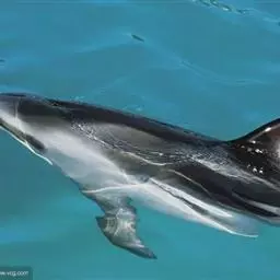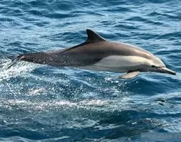 真海豚,身体细而流线型。体色十分复杂而独特,通常十字交叉型,黄褐色在前灰色在后,背面黑色向下延伸,…