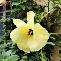 黄蜀葵 Medicus),是锦葵科秋葵属一年生或多年生草本。全株疏被长硬毛;叶近圆形,…