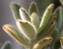 褐斑伽蓝是景天科、伽蓝菜属多年生肉质草本植物或小灌木。全株灰白色,密布白色茸毛。叶片长卵形,…