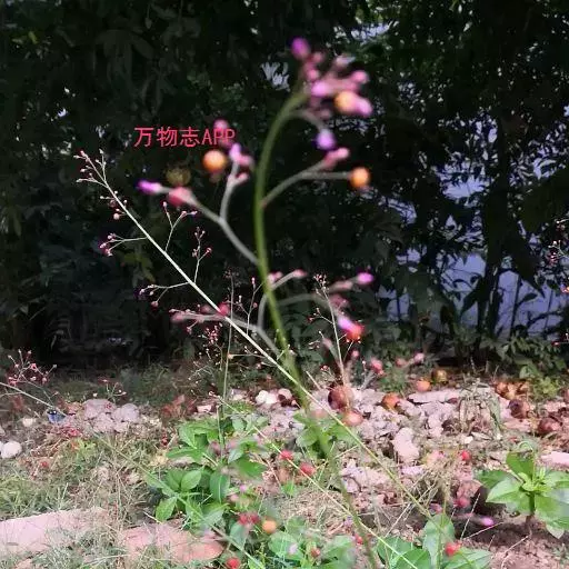 圆锥花序顶生或腋生,较大形,常二叉状分枝,具长花序梗;花小,直径约6毫米;总苞片绿色或近红色,圆形,顶端圆钝,长3-4毫米;苞片2,膜质,披针形,顶端急尖,长约1毫米;花梗长5-10毫米;萼片卵形,紫红色,早落;花瓣粉红色或淡紫红色,长椭圆形、倒卵形或椭圆形,长6-12毫米,顶端圆钝,稀微凹;雄蕊(10-)15-20,比花瓣短;花柱线形,长约2毫米,基部具关节;柱头3裂,稍开展;子房卵球形,长约2毫米。蒴果近球形,直径约4毫米,3瓣裂,坚纸质;种子多数,扁圆形,直径约1毫米,黑褐色或黑色,有光泽。花期6-7月,果期9-10月。