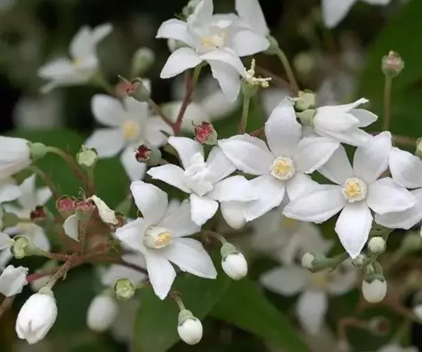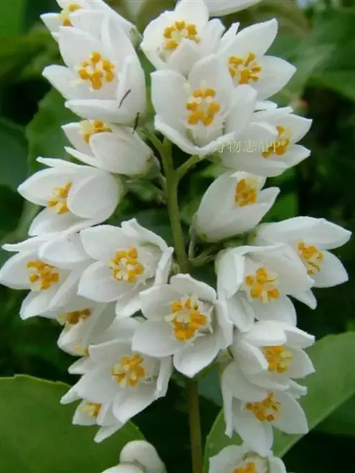 2)壮丽溲疏(D.× magnifica),为杂交种,株高2米以上。叶卵状长圆形或长卵形。花重瓣,纯白色。