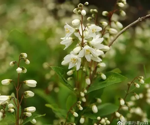初夏白花满树,洁净素雅,其重瓣变种更加美丽。