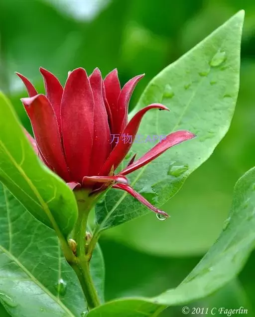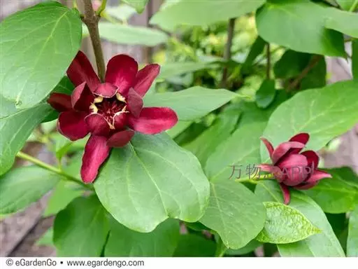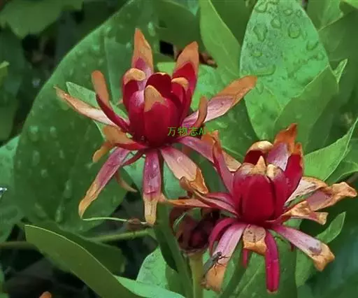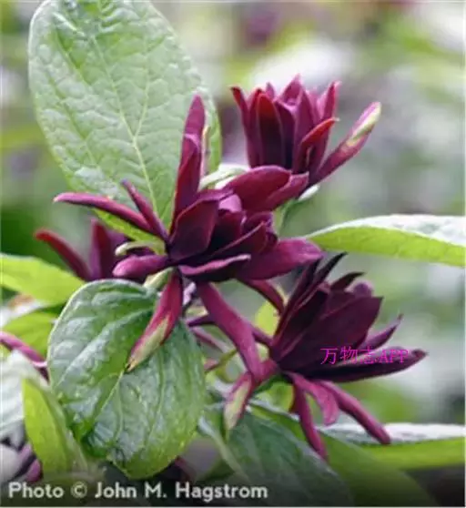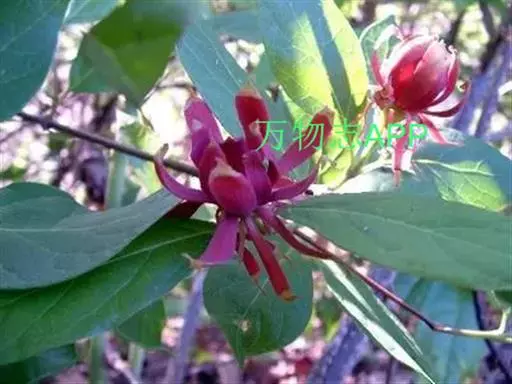光叶红(Calycanthusfloridusvar.glaucus(Willd.) Torr. et A.Gray):与原变种的不同在于本变种的叶、叶柄及枝条均无毛或几无毛。花期6月。原产于北美。栽培于中国江西庐山植物园。观赏植物。