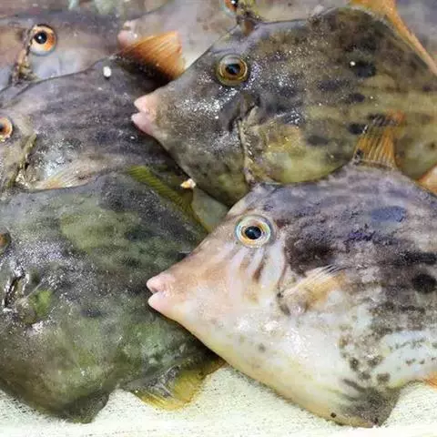 绿鳍马面鲀,硬骨鱼纲,单角鲀科。,俗名橡皮鱼、剥皮鱼、猪鱼、皮匠鱼。分布于朝鲜、日本、印度洋非洲东…