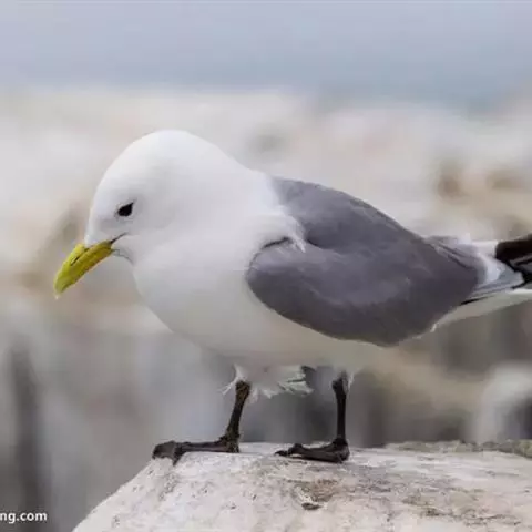 灰翅鸥,夏羽头、颈、腰、尾白色;肩、背和翅上覆羽鸽灰色。冬羽和夏羽相似,但头和颈具淡褐色纵纹,有时…