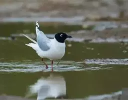 黑嘴鸥 中型水鸟,体长31~39厘米。嘴黑色,脚红色。夏羽头黑色,眼上和眼 下具白色星月形斑,在黑…
