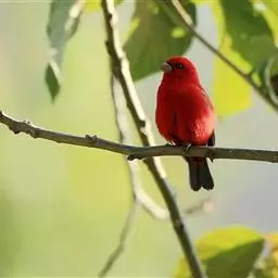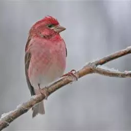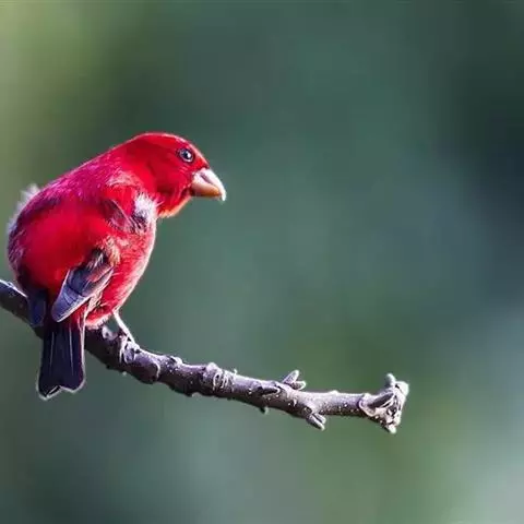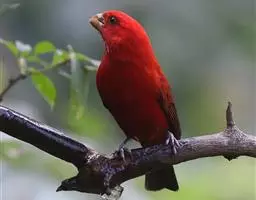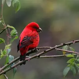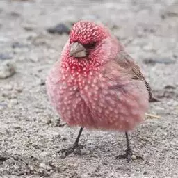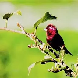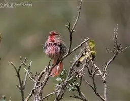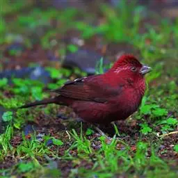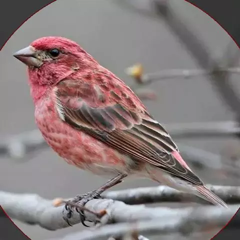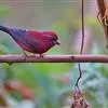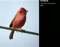 酒红朱雀小型鸟类,体长13~15厘米。雄鸟通体深红色,头部深朱红或棕红色,下背和腰玫瑰红色,…