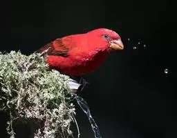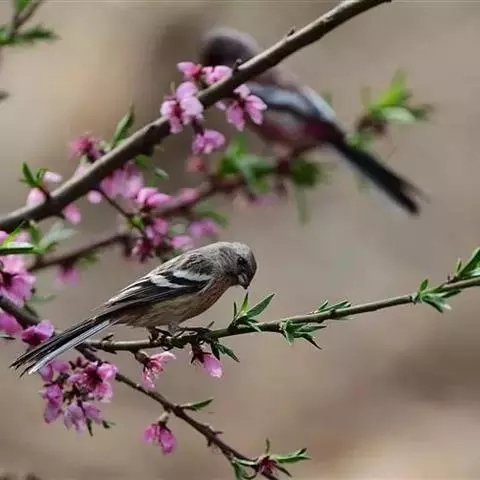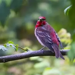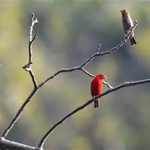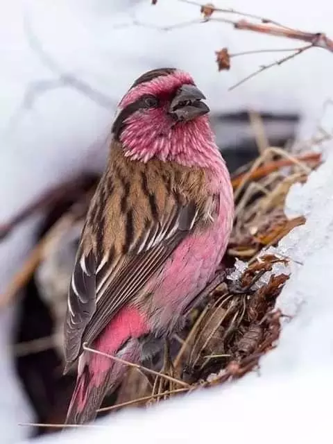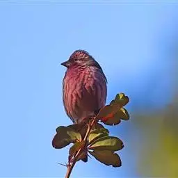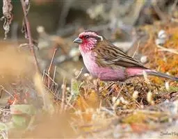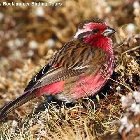藏朱雀:全长约17-18厘米。雄鸟头部深红色具光辉,喉部暗红色具白色点斑;背部灰白色,各羽具玫瑰红…