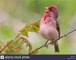 北朱雀,是燕雀科朱雀属鸟类。雄鸟额和头顶前部珠白色具窄的粉红色羽缘,…