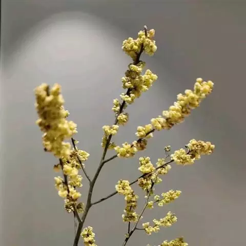 伞形花序腋生,常2-3个簇生于短枝上,短枝长1-2毫米,花序梗长6毫米,有白色短柔毛,每一花序有花4-6朵,先叶开放或与叶同时开放;花被裂片6,黄色,宽倒卵形,能育雄蕊9,花丝有柔毛,第3轮基部腺体盾状心形,黄色;退化雌蕊无。果球形,直径约5毫米,成熟时蓝黑色;果梗长5-6毫米,有稀疏短柔毛。花期3-4月,果期9-10月。