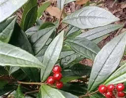 矮紫金牛是报春花科、紫金牛属灌木,株高1-2米。叶片革质,倒卵形或椭圆状倒卵形,少数倒披针形,…