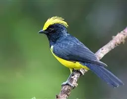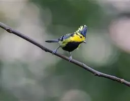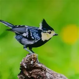 台湾黄山雀体长约13厘米。头顶至后颈黑色,有一长的黑色羽冠,羽冠末端和后颈中央白色。背苍绿色,…