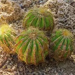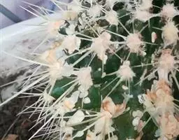 江守玉为仙人掌科强刺球属,植株扁圆形至球形,后成圆柱状,体色灰绿,刺座上附生白色绒毛,花橙黄色,漏…