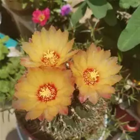 英冠玉株体蓝绿,花黄色艳,生长健壮,充满活力。适于盆栽或暖地地栽观赏。 [1-2] 英冠玉