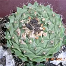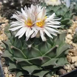 岩牡丹是仙人掌科、岩牡丹属多年生草本多浆植物。植株球形或呈扁平的莲座状,灰绿色,球体表面被白粉。…