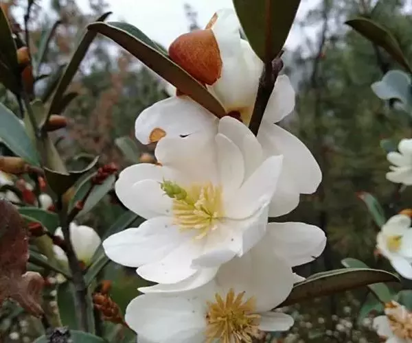 多花含笑是木兰科,含笑属小乔木,高可达20米。芽圆柱形或狭卵形,嫩枝被淡黄色绒毛,老枝无毛,叶革质…