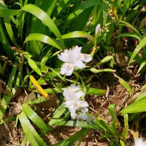 大扁竹兰扇形鸢尾,多年生草本,根茎横生,粗壮,黄白色,节明显;叶黄绿色,集生茎顶,叶片宽剑形,花蓝…