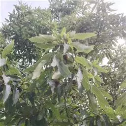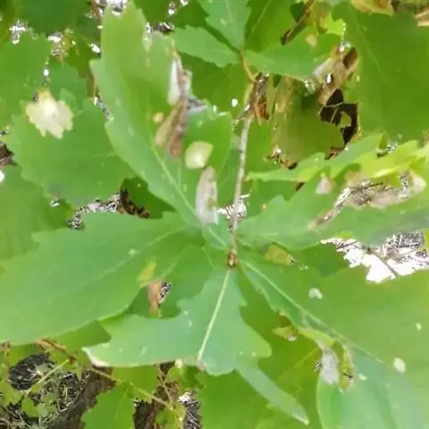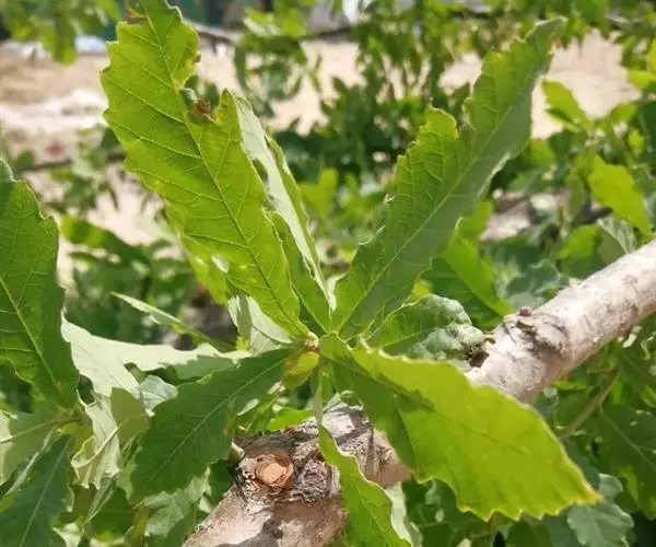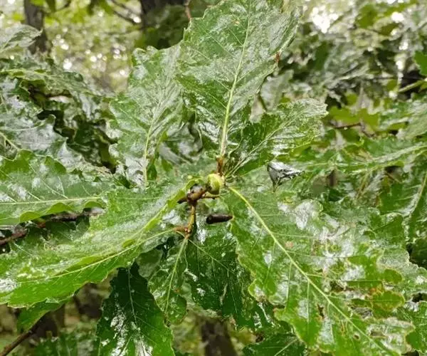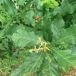 ◎ 落叶乔木,叶子长椭圆形,结球形坚果,叶可喂蚕;木材坚硬,可制家具,供建筑用,树皮可鞣皮或做染料。亦称“麻栎”、“橡”;通称“柞树”。