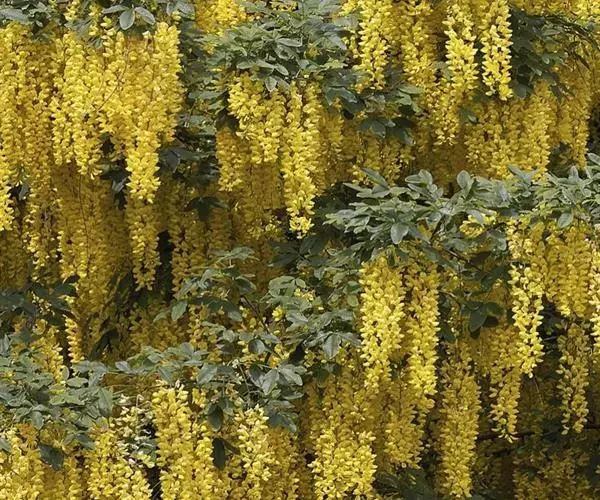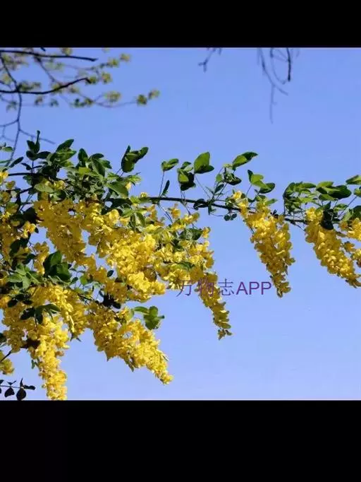 毒豆,春、夏之交开花,花期长,花色金黄鲜艳,花穗长似金链,通常用于行道树和长廊绿化, 形如黄色瀑布,壮观迷人。秋天叶色鲜艳,是优良的观叶树种。也可以孤植或群植,利用其柔软的枝条,塑造成不同的造型;或与其他彩色植物搭配,点缀在草坪或石旁,具有非常美丽的造景效果。也可以作为庭院树,美化居住环境。