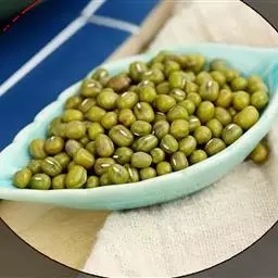 5.炒锅放油,将黄豆芽炒至断生,加入少许盐,将炒好的黄豆芽放入容器内备用。