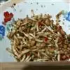 4.另取一锅,倒入半斤油(油以倒入大盆中时,把鱼和豆芽全部淹没为准)。待油热后,关火先晾一下。然后加入花椒及干辣椒,用小火慢慢炒出花椒和辣椒的香味。注意火不可太大,以免炒糊。