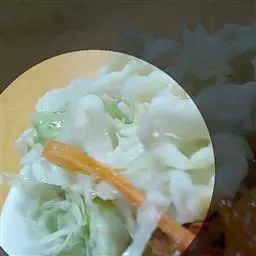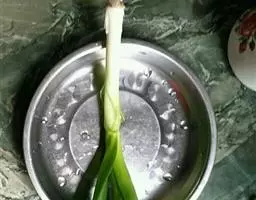 2.烧开一小锅水,洗净的豆芽放入开水中烫一下,捞入大盆中,按个人口味撒一点盐,备用。