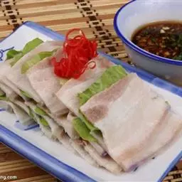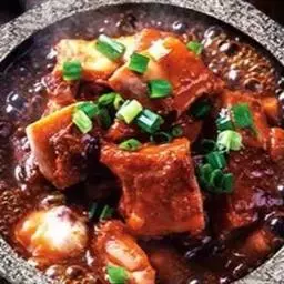 梅菜扣肉,汉族传统名菜,属客家菜 。制作材料有五花肉、梅菜、葱白、姜片等。