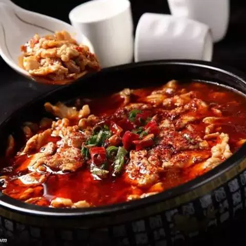 水煮鱼,肉质口感滑嫩,油而不腻;满目的辣椒红亮养眼,辣而不燥,麻而不苦。“麻上头,辣过瘾”是其最大特点。
