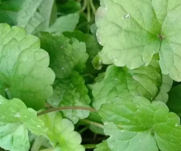 茎叶方柱形,细而扭曲,长10-20cm,直径1-2mm,黄绿色或紫红色,具纵棱及短柔毛,节上有不定根;质脆,易折断,断面常中空。叶对生,灰绿色或绿褐色,多皱缩,展平后呈肾形或近心形,长1-3cm,宽1.5-3cm,边缘具圆齿叶柄纤细,长4-7cm。轮伞花序腋生,花冠淡蓝色或紫色,二唇形,长达2cm。搓之气芳香,味微苦。以叶多、色绿、气香浓者为佳。