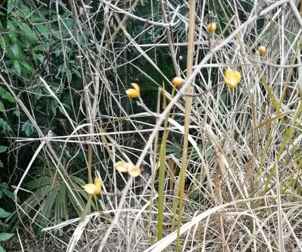 南蛇藤(学名:Celastrus orbiculatus Thunb.):卫矛科南蛇藤属落叶藤状灌木。小枝光滑无毛,灰棕色或棕褐色,腋芽小,卵状到卵圆状,叶通常阔倒卵形,近圆形或长方椭圆形,边缘具锯齿,两面光滑无毛或叶背脉上具稀疏短柔毛,聚伞花序腋生,花小,雄花萼片钝三角形;花瓣倒卵椭圆形或长方形,花盘浅杯状,雌花花冠较雄花窄小,肉质,子房近球状,蒴果近球状,种子椭圆状稍扁,赤褐色。5-6月开花,7-10月结果。