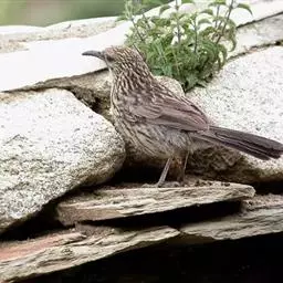 大噪鹛:中型鸟类,体长32-36厘米。额至头顶黑褐色,背栗褐色满杂以白色斑点,…