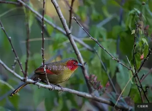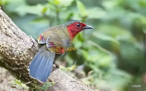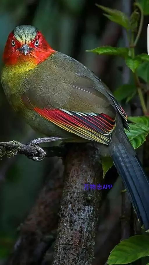 红翅薮鹛(学名:Liocichla phoenicea)是噪眉科、薮鹛属中型鸟类,体长21-24厘米。头顶灰褐色,头侧和颈侧赤红色,上体橄榄褐色,翅上具红色块斑,尾具红色或橙黄色块斑,下体灰色沾褐。虹膜褐色或红色,嘴黑色,脚暗褐色或淡灰褐色。