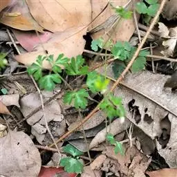 基生叶少数,二回三出复叶;叶片宽4-10厘米,中央小叶具1-6毫米的短柄,楔状倒卵形,长1.5-3厘米,宽几相等或更宽,上部三裂,裂片常有2-3个圆齿,表面绿色,无毛,背面淡绿色至粉绿色,被短柔毛或近无毛;叶柄长达18厘米,疏被柔毛或无毛,基部有鞘。茎生叶数枚,为一至二回三出复叶,向上渐变小。