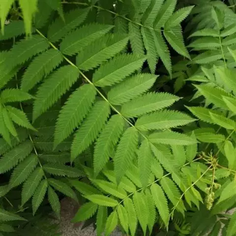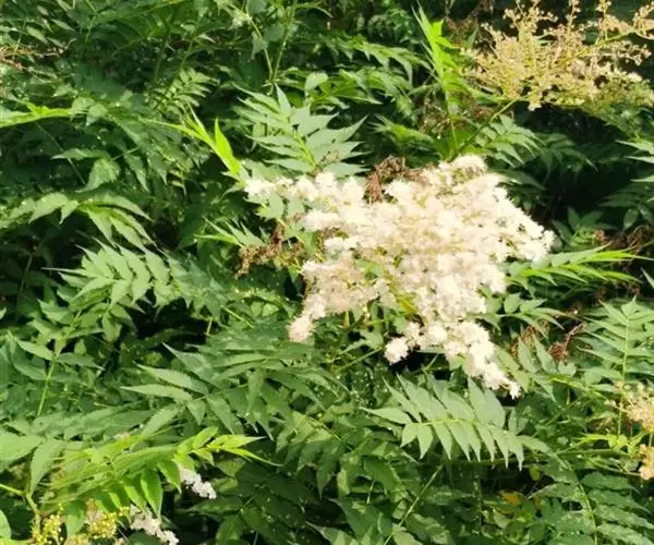 珍珠梅(学名:Sorbaria sorbifolia (L.)A. Br)是蔷薇科,珍珠梅属灌木,高可达2米,枝条开展;冬芽卵形,紫褐色,先端圆钝,具有数枚互生外露的鳞片。羽状复叶,小叶片对生,披针形至卵状披针形,先端渐尖,稀尾尖,基部近圆形或宽楔形,稀偏斜,边缘有尖锐重锯齿,上下两面无毛或近于无毛,羽状网脉,托叶叶质,顶生大型密集圆锥花序,分枝近于直立,总花梗和花梗被星状毛或短柔毛,果期逐渐脱落,苞片卵状披针形至线状披针形,先端长渐尖,全缘或有浅齿,上下两面微被柔毛,果期逐渐脱落;萼筒钟状,萼片三角卵形,先端钝或急尖,萼片约与萼筒等长;花瓣长圆形或倒卵形,白色;雄蕊生在花盘边缘;心皮无毛或稍具柔毛。蓇葖果长圆形,有顶生弯曲花柱,7-8月开花,9月结果。
