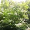 顶生大型密集圆锥花序,分枝近于直立,长10-20厘米,直径5-12厘米,总花梗和花梗被星状毛或短柔毛,果期逐渐脱落,近于无毛;苞片卵状披针形至线状披针形,长5-10毫米,宽3-5毫米,先端长渐尖,全缘或有浅齿,上下两面微被柔毛,果期逐渐脱落;花梗长5-8毫米;花直径10-12毫米;萼筒钟状,外面基部微被短柔毛;萼片三角卵形,先端钝或急尖,萼片约与萼筒等长;花瓣长圆形或倒卵形,长5-7毫米,宽3-5毫米,白色;雄蕊40-50,约长于花瓣1.5-2倍,生在花盘边缘;心皮5,无毛或稍具柔毛。