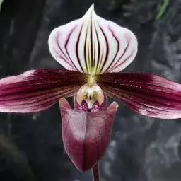 紫纹兜兰 Stein)是兰科兜兰属的地生或半附生植物。叶基生,叶片狭椭圆形或长圆状椭圆形,…